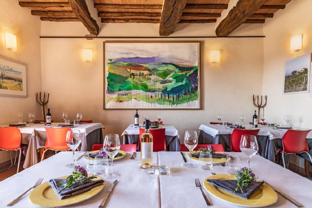 In the summer, we serve dinner by candlelight on the wonderful outdoor terrace that offers an awesome view over the hills and vineyards of the Chianti area, whereas the intimate and warm atmosphere of the inner dining room welcomes diners in the winter season.
