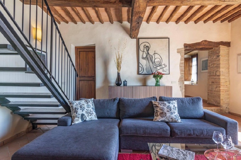 Nicchie is an apartment on the first floor with 2 bedrooms and 2 full bathrooms. In addition to the main entrance, there are two rear doors that lead out to the back gardens. The windows give way to wonderful views over the Chianti hills.