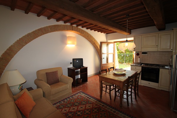 You can enjoy a breathtaking view from any of the apartments: the mellow profile of the Tuscan hills covered in olive groves and vineyards, and an alternation of woods and small towns that reminds us of the area’s origins and gives a picture of tranquillity and peace which has mostly been forgotten.