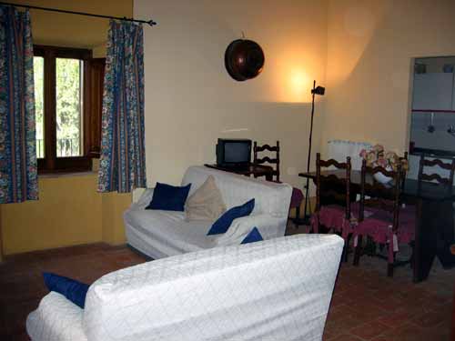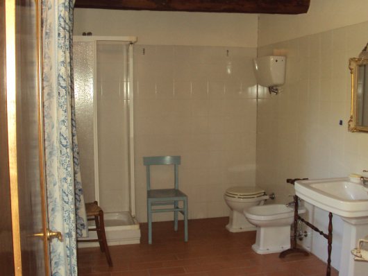 The entrance is a typical loggia and from there one enters a large sitting room with a typical Tuscan fireplace adjacent to a fully equipped kitchen. A corridor leads to three bedrooms, two double and one master (sleeps 6+2) with a view on the valley and two bathrooms with shower.